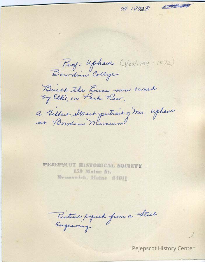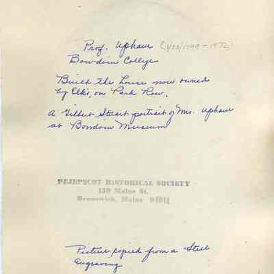 An engraving of Professor Thomas C. Upham of Bowdoin College, Brunswick, ME. Not dated.