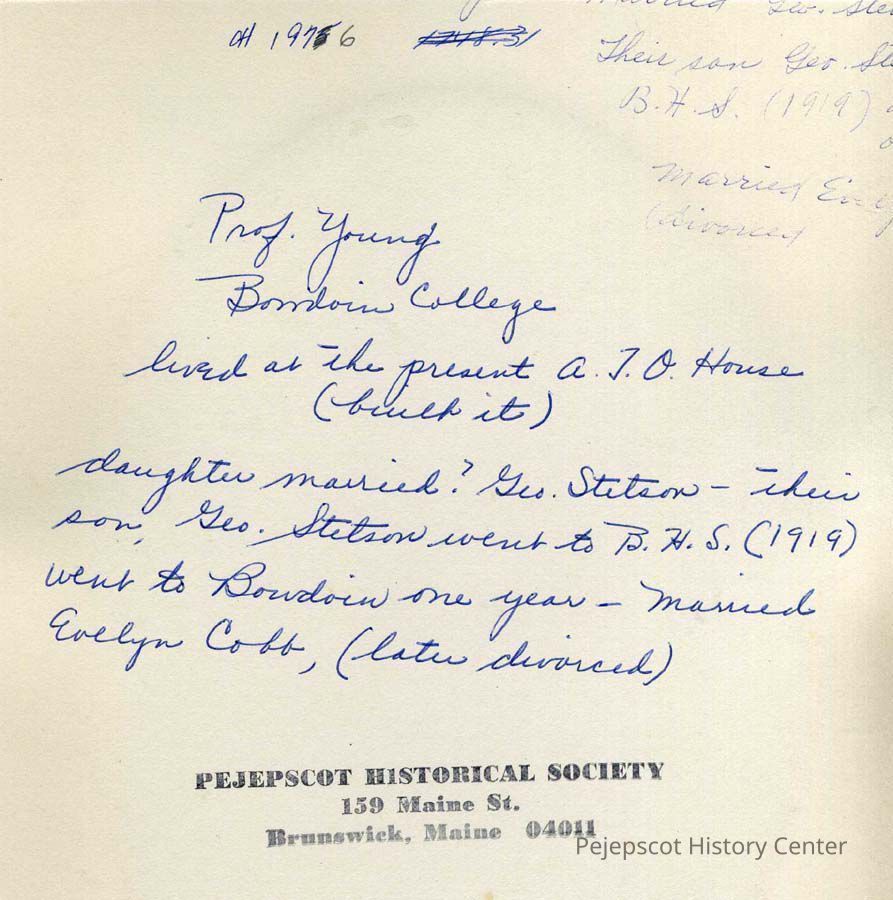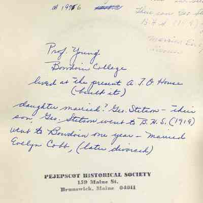 A B/W photograph of Prof. Young of Bowdoin College, Brunswick, ME. Not dated.