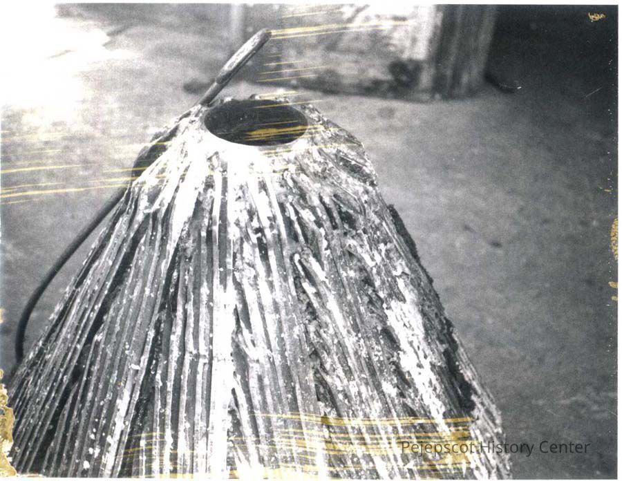 An undated black and white photograph of the rotating part of a pulp grinding machine.