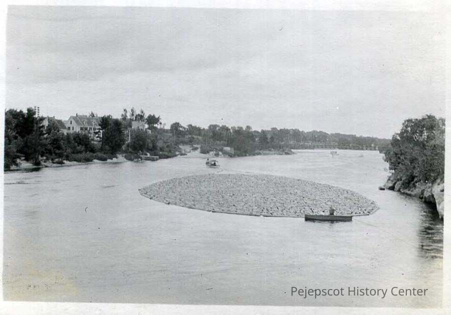 B/W photo of pulp logs on the Andoscoggin River, Maine. Dated 05/02/1923.