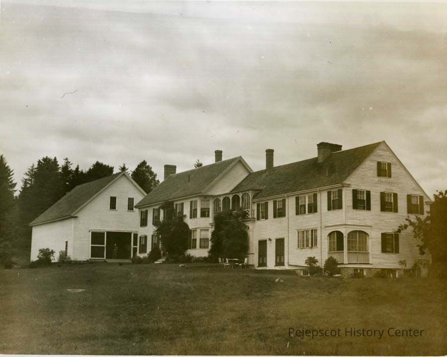 A B/W photograph of Pulsifer House, Cundy's Harbor. Was called Little Ponds. Right wing was added c. 1920. Harold T. Pulsifer owned it. Undated Located at Bethel Point. Right