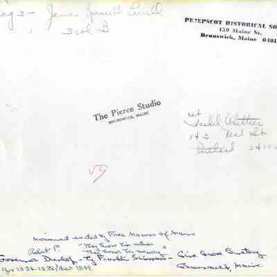 A B/W photograph of the Gov. Robert. P. Dunlap memorial erected by the Free Masons of Maine in the Pine Grove Cemetery.