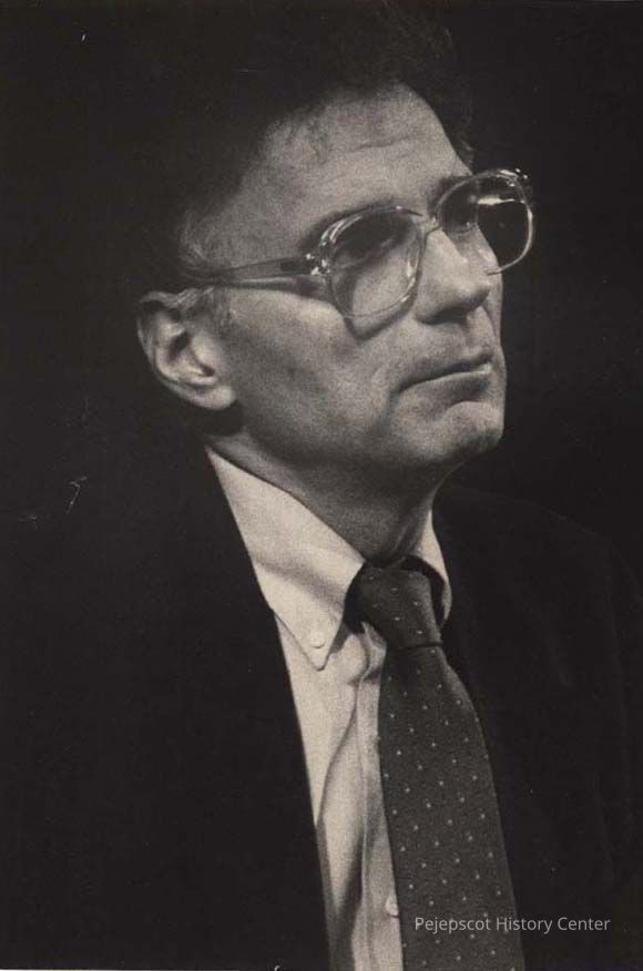 A black and white photo of Ralph Nader, who was speaking at Bowdoin College, was published in The Times Record in Brunswick, Maine, on 4/18/1990.