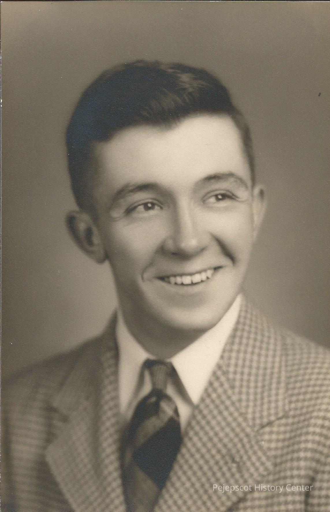 A B/W school photo of Raymond Bernier BHS Class of 1948. Written on the frame, "Best of luck