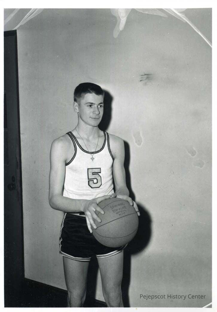 Raymond Tetreault, number 5 on the BHS basketball team, poses with a ball in January, 1954.