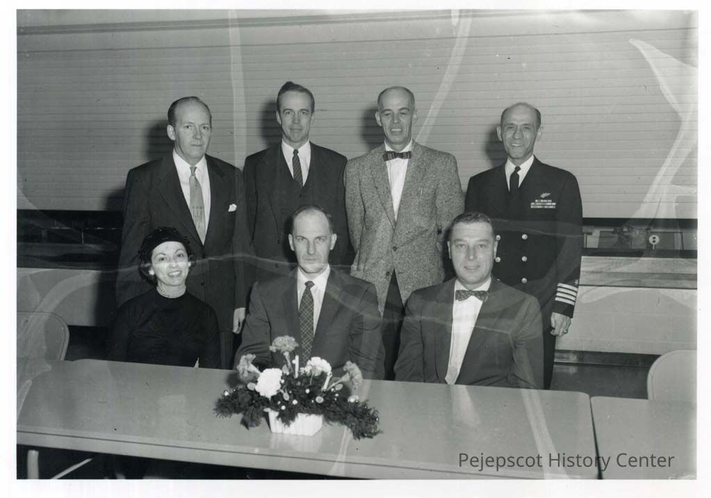 This photo shows a group preparing for the Red Cross campaigne. In the back row are Sam Ladd and Stacey Coles and two unidentified men and in the front row are three people with only the middle man identified as Merle Goff.