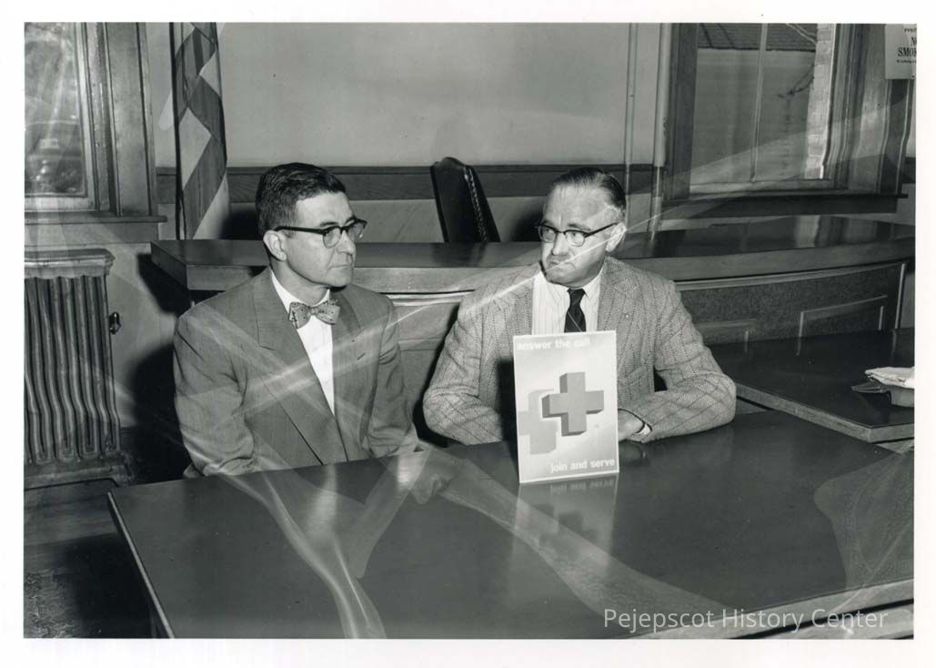 This photo shows two Red Cross Officers: the find chairman, Robert Zottoli and the Chapter chairman, Emerson W. Zeitler.