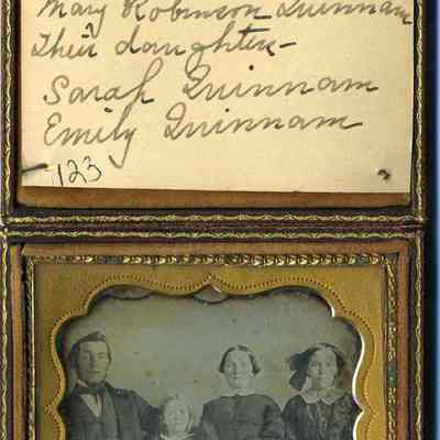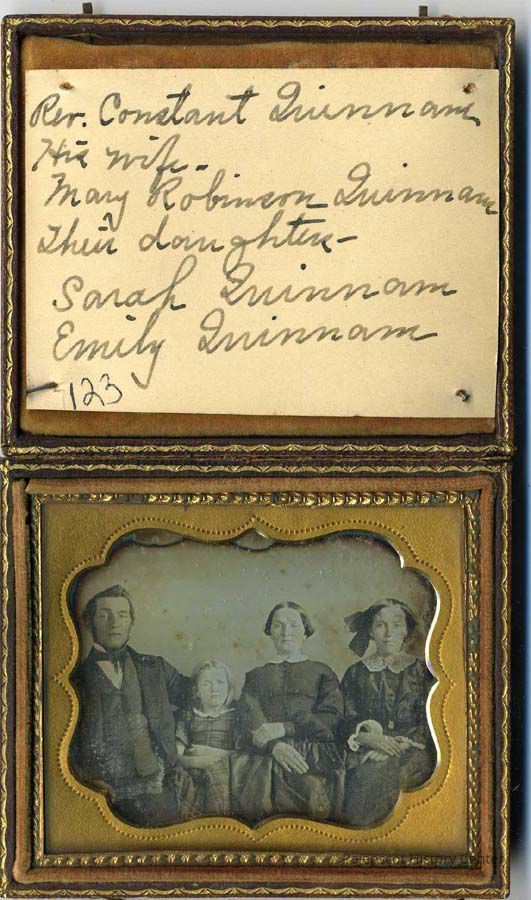 An undated daguerreotype portrait of Rev. Constant Quinnan, his wife Mary Robinson Quinnan, their daughters Sarah Quinnan and Emily Quinnan.
