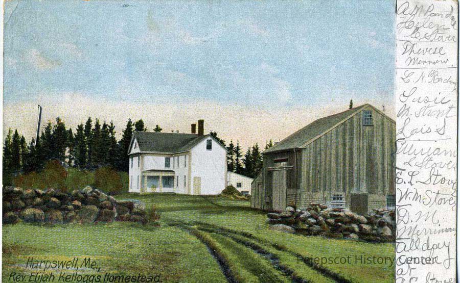 A colorized photographic view of Rev. Elijah Kellogg's Homestead in Harpswell.