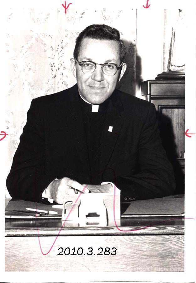 A B/W photograph of a priest. Written on the back of the photo, "Rev. David Lajoie, SM new curate, St. John's parish." No clipping. UndatedCollection