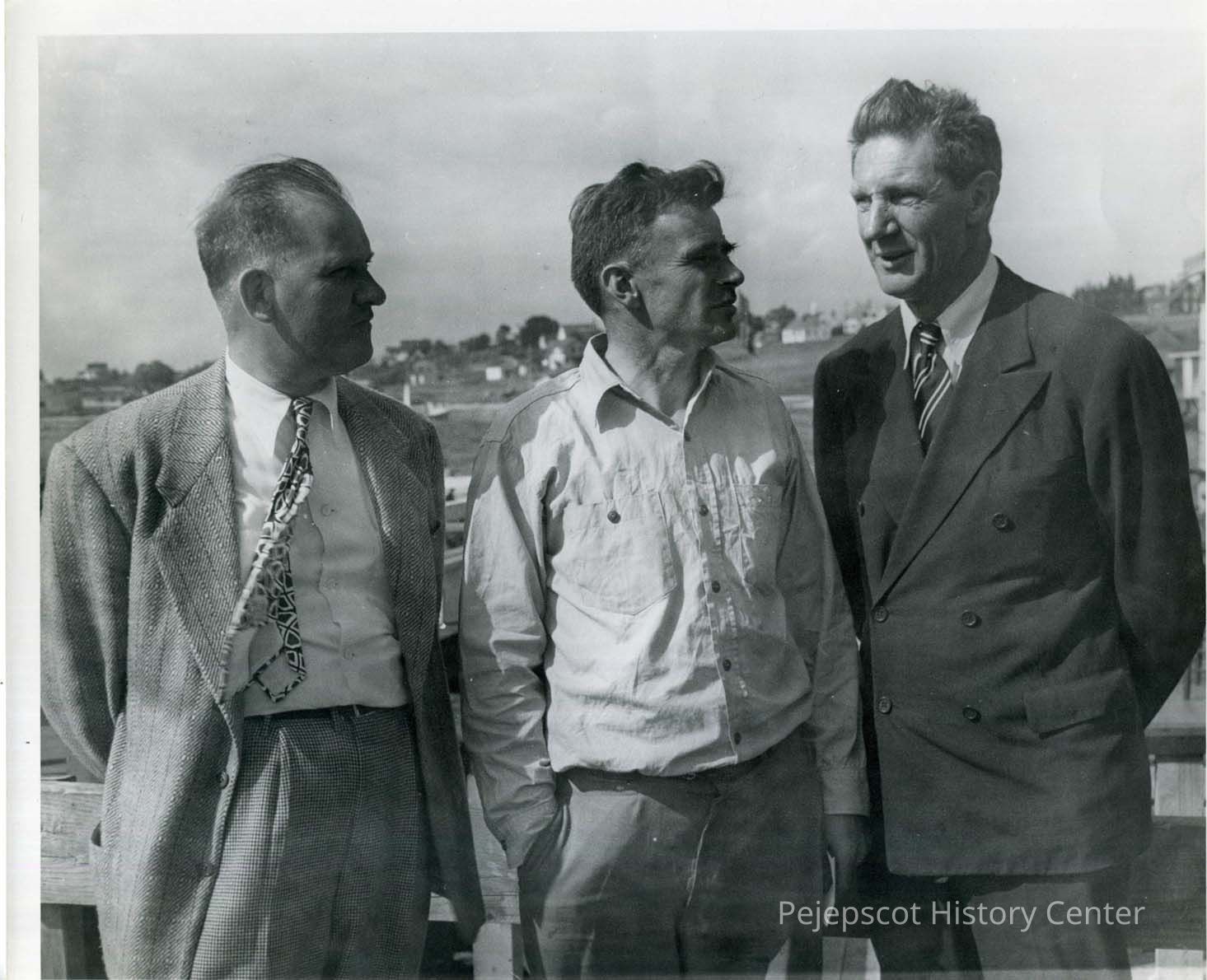 A photo taken on Bailey Island of three men only the middle of whom is identified. He is Reverend Herrick. Undated
