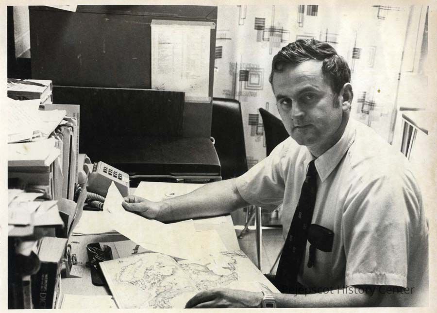 A black and white photo of Richard F. Snow appeared in The Times Record in Brunswick, Maine, on 6/17/1981 with an article about Snow winning the Merit Teacher Award for 1981 from the National Council for Geographic Education.