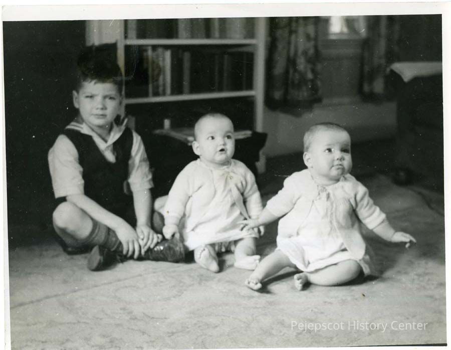 Black and white photograph of Richard, and twins Joan and Janice Lancaster. Undated