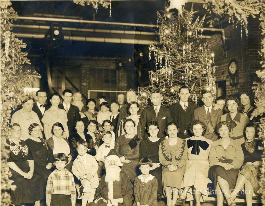 B/W photo of Richardson Laundry Christmas Party. Laundry on Maine Street, Brunswick, ME. Those who are identified: seated,
