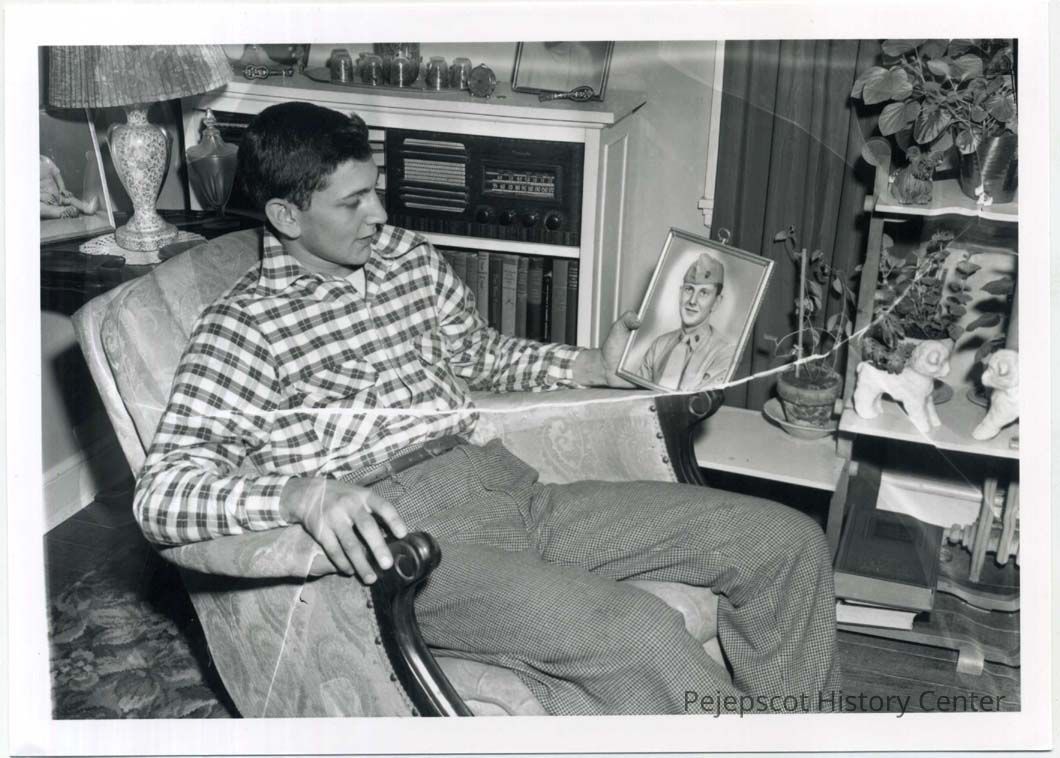 Ricky Davis sits in an arm chair looking at a photo of his brother, Harold Davis, who served in WWII.