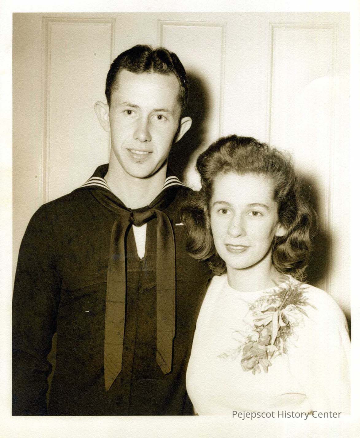 Rita Lemieux with her unidentified sailor groom. Undated