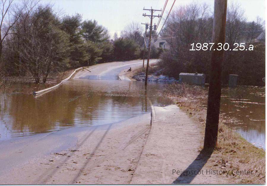 A color photograph of the "S" Curve on River Rd. Brunswick, ME. Flood of 4/2/1987