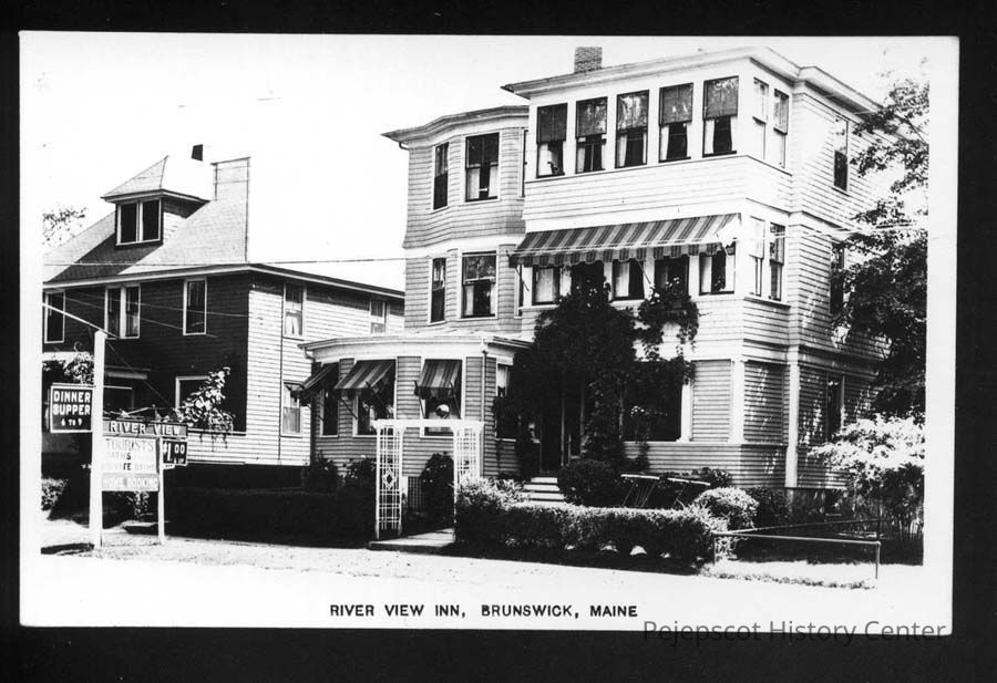 Black & white photograph of the River View Inn, outer Pleasant Street (91), Brunswick.