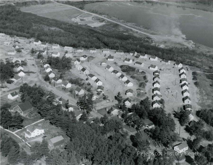 A B/W photograph of Riverview Housing Development off Jordan Avenue. The Old Town Dump is in the background at the end of Water Street. Undated
