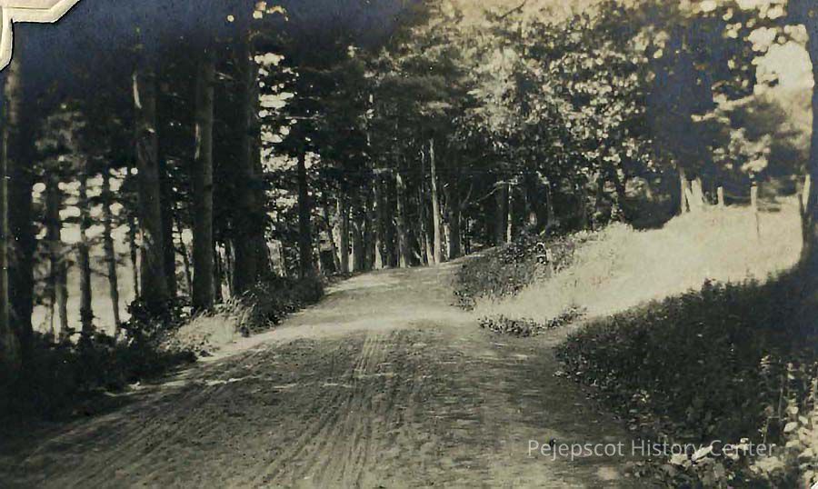 A B/W photo of the road at Gurnet, Brunswick, Maine. Undated.