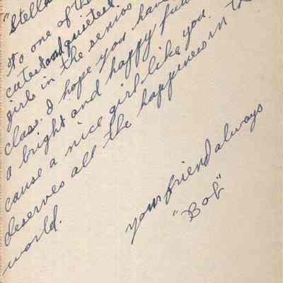 A B/W photograph of Robert Benoit, Brunswick High School Class of 1951. He gave the photo to Stella Purinton of the same class. Undated