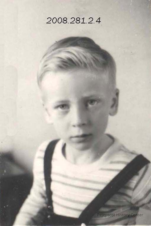 A small children's photo album with very small pictures of classmates in it. Class of 1949 (Growstown School?) This is a photo of Robert Carter. Undated