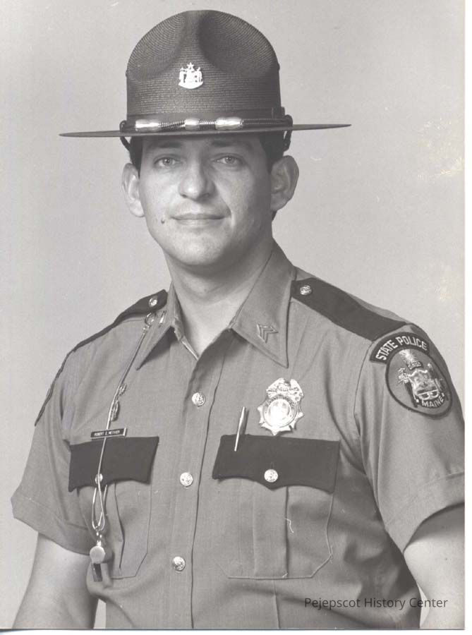 A black and white photograph Sgt. Robert Metwin of the Maine State Police was published in The Times Record in Brunswick, Maine, on 7/11/1986.