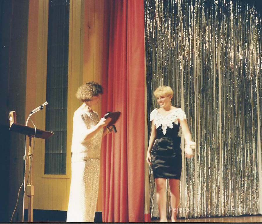 A color photograph of Sharon naming thereceipant of the Robert P. Anderson III Scholarship photographers # 4-32