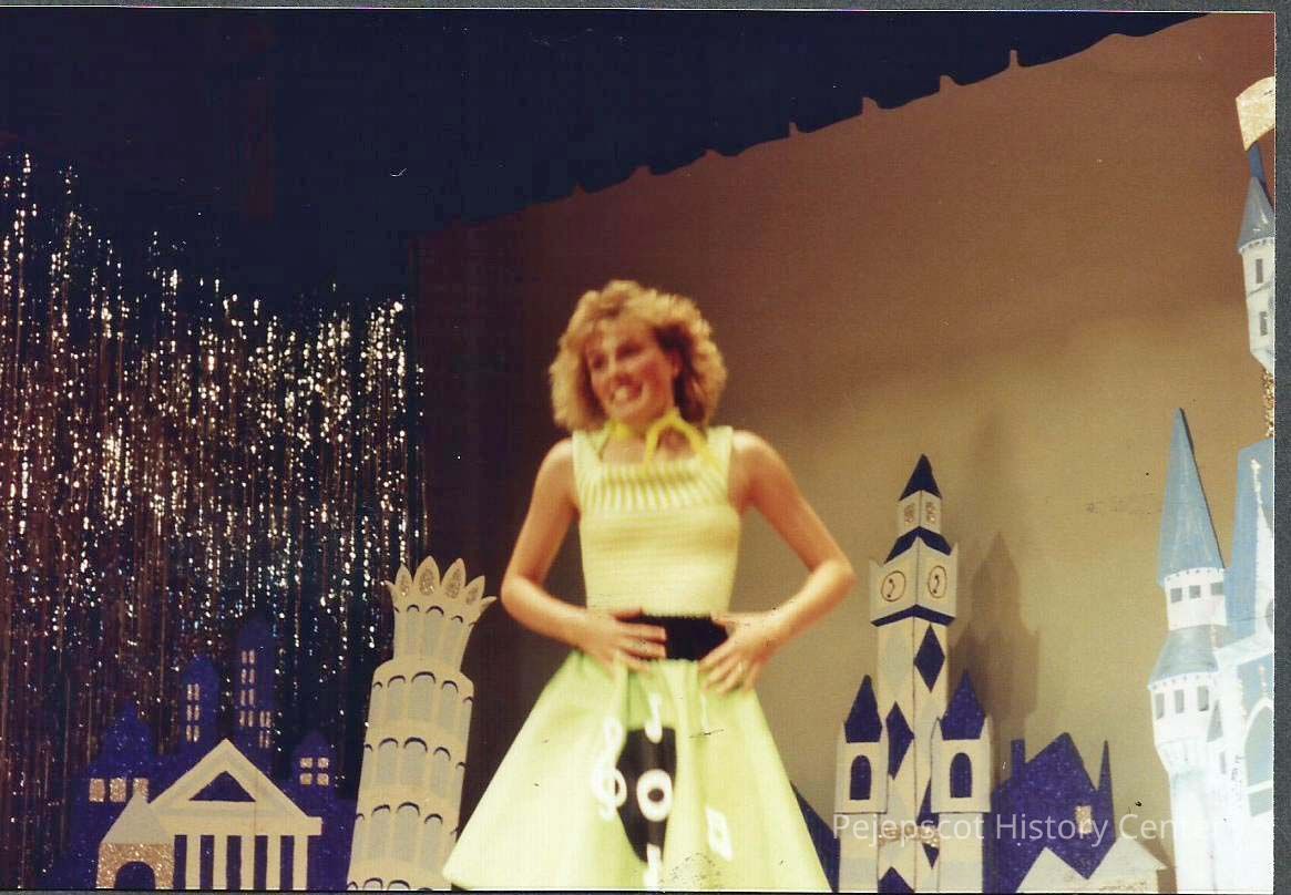 A color photograph of Robin Moody dancing to "A Tribute to Rock & Roll". Photographer's # CYO sponsored