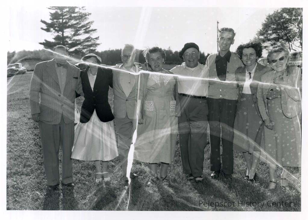 Eight people pose for the camera at the Rotary Club picnic of June 20, 1953.