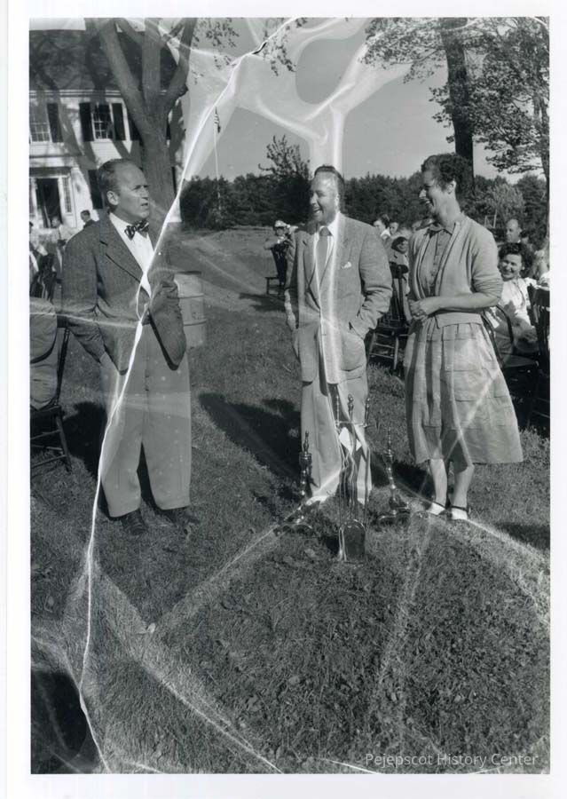 Black and white photograph of a Rotary picnic 6/20/53 Sam Ladd G. E. Coleman Jean Coleman