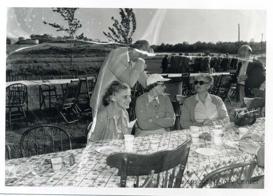 Black and white photograph of a Rotary picnic 6/20/53 Ray Hamlin on right