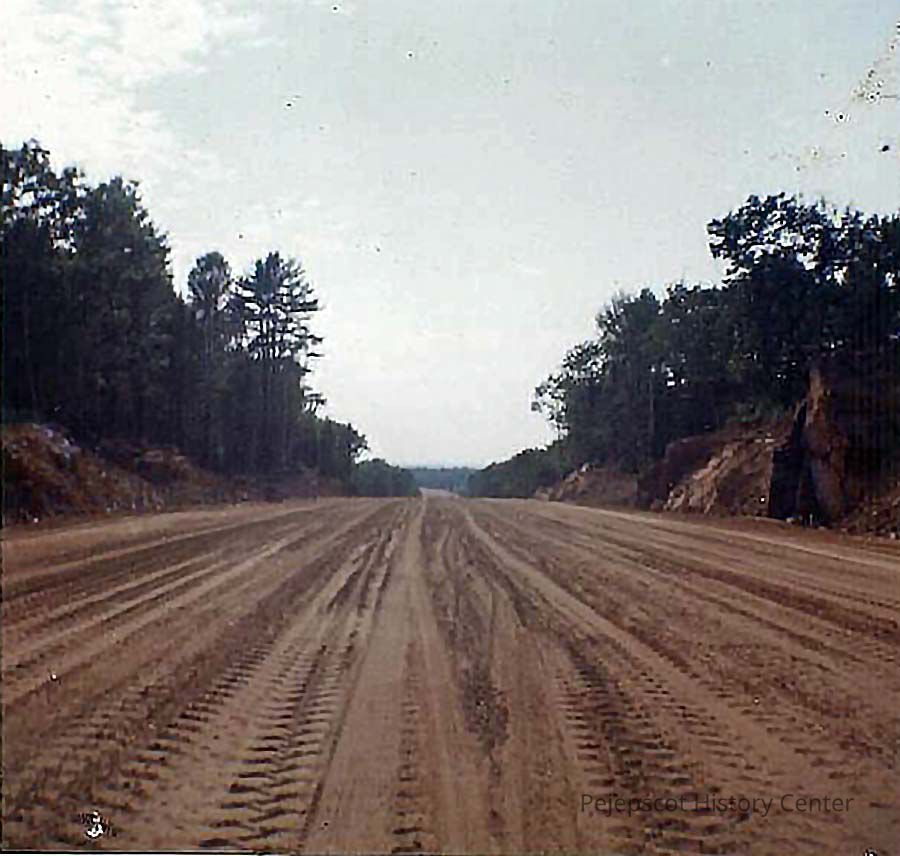 A color photo of the construction of Route 1, looking towards Bath from near Cooks Corner.