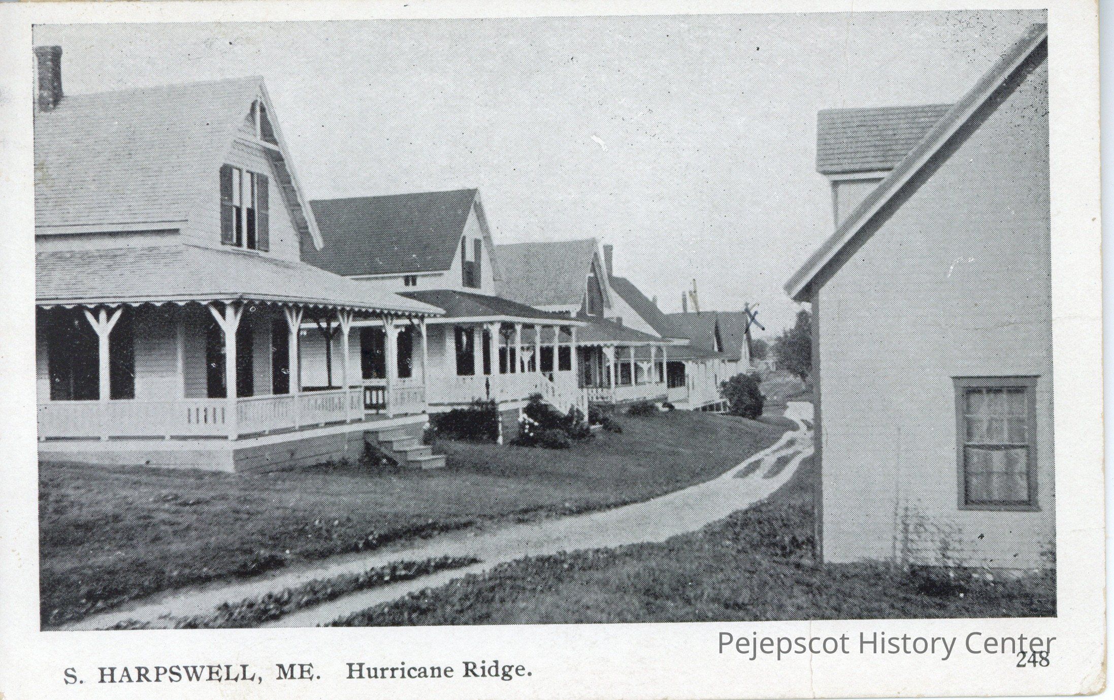 Black and white photo postcard of houses along Hurricane Ridge, S. Harpswell, Me.Collection