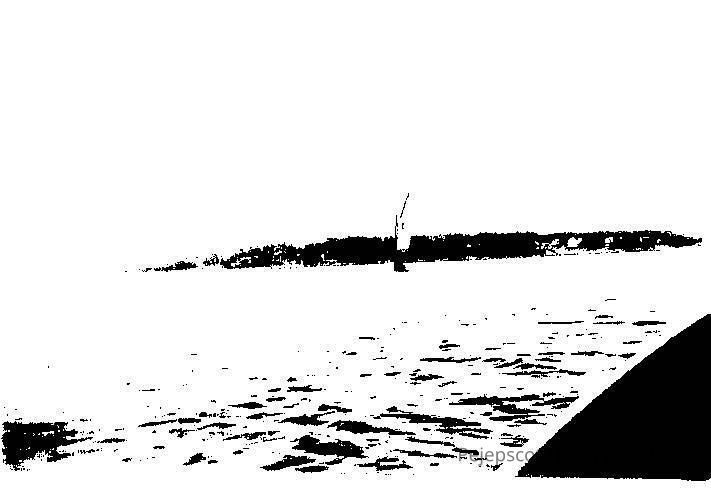 A B/W photograph of a sail boat in the Androscoggin River. Undated