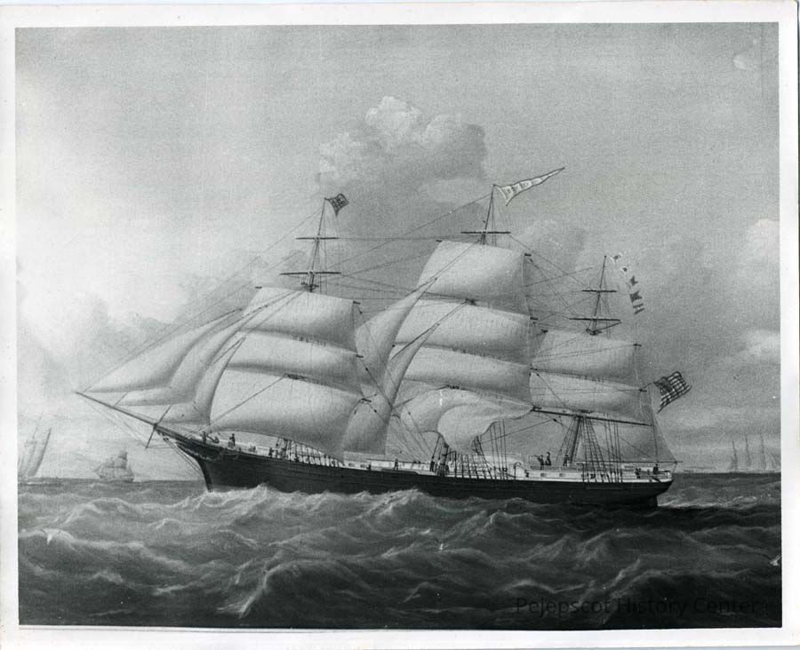 Ship, Sailing ship, Vessels - Bombay, Jordan family, Ship captains - Francis C. Jordan, Ship captains, Brunswick, Lithograph, President's House, President's House, Brunswick