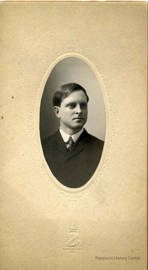 Black & white photograph of Sam Forsaith as a young man, in oval cream-colored matte.