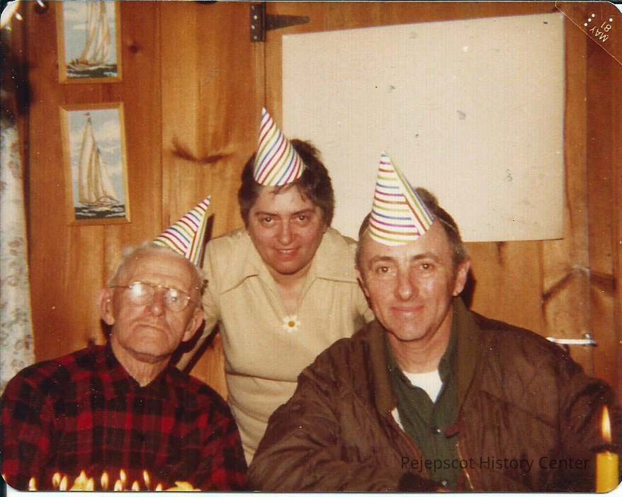 A color photograph of Samuel Holbrook and two unidentified people. In front of the Sam Holbrook is what appears to be candles from a birthday cake. Undated