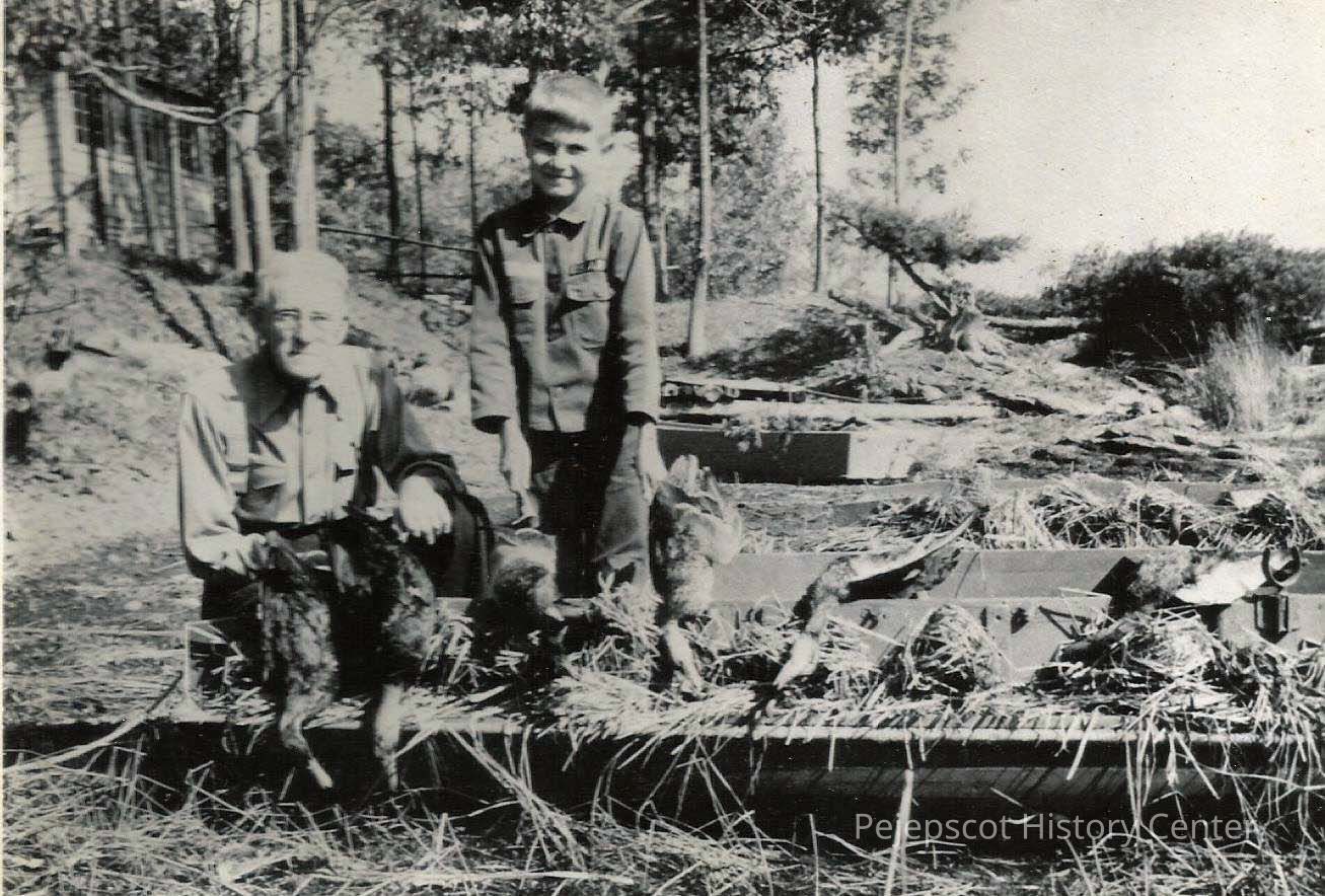 A B/W photograph of Samuel S. Holbrook and one of his grandsons. They have a total of four ducks. Lily's Shore 10/8/1966