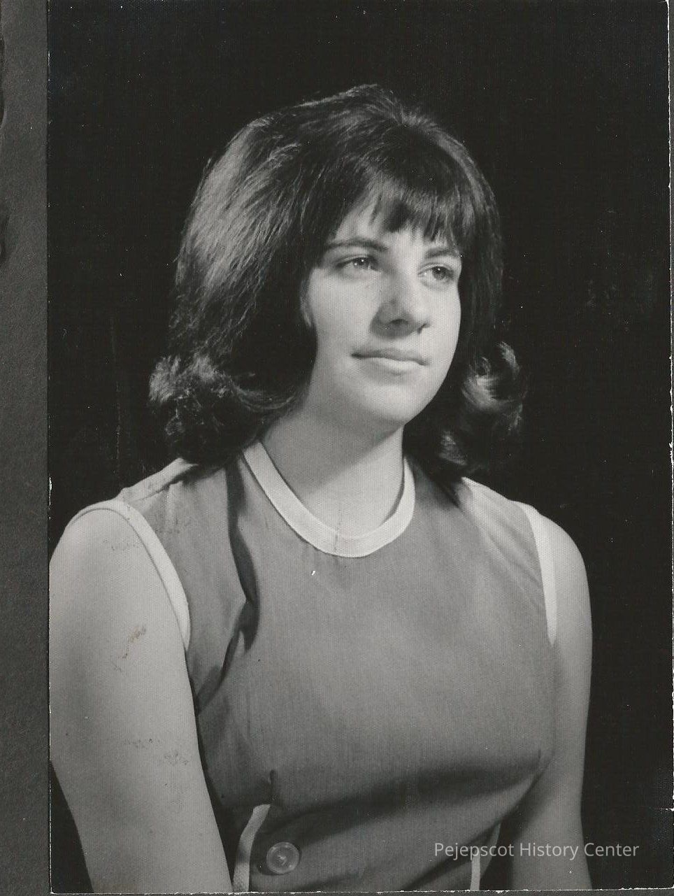 Sandra is the daughter of Mr. & Mrs. Herbert Closson, of 25 Winter Street, Topsham. She is 14 years old, and a freshman at B. H. S. This photo dates from 1964-65 when she was a contestant in the Brunswick Teen Queen Pageant.