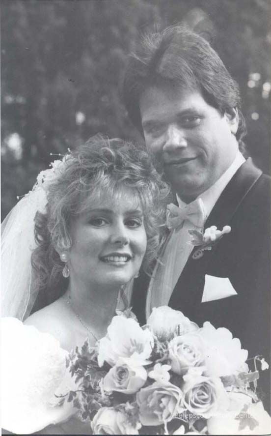 An undated black and white wedding photograph of Andrew F. Slowik and Sandra J. Gosselin.
