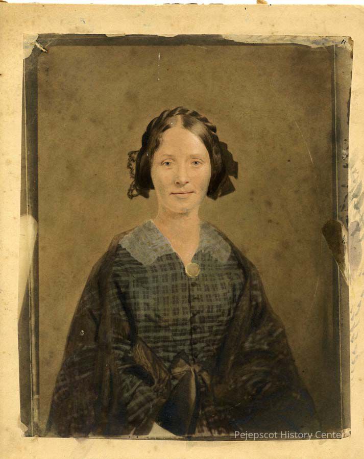 Tinted photograph of Sarah Brastow Chamberlain of Brewer, ME.