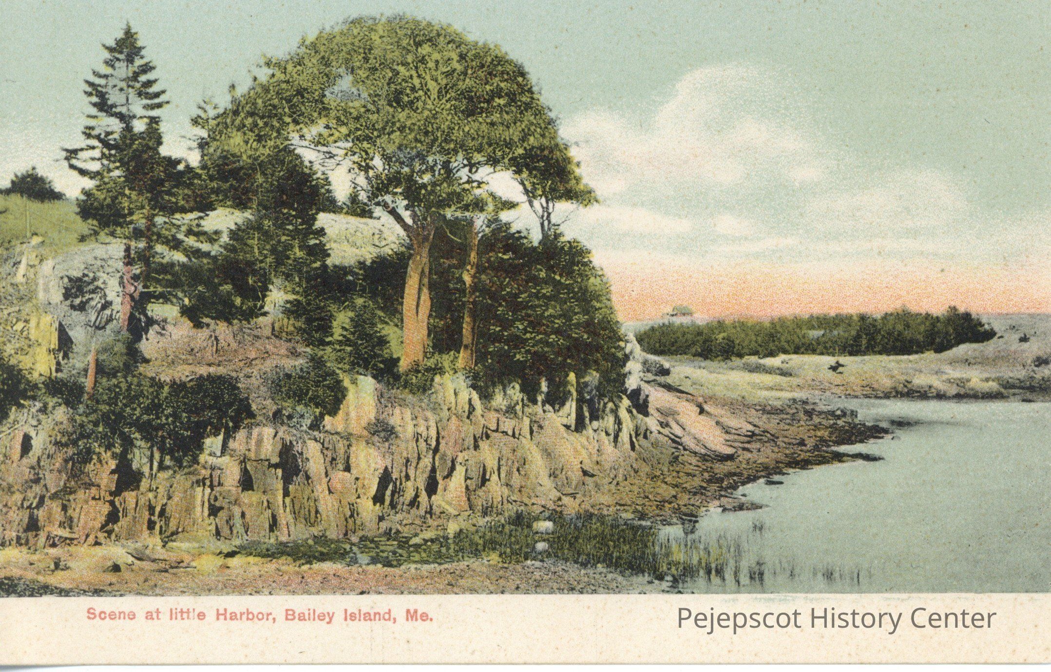 Color photo postcard of a scene at little Harbor, Bailey Island, Me.Collection