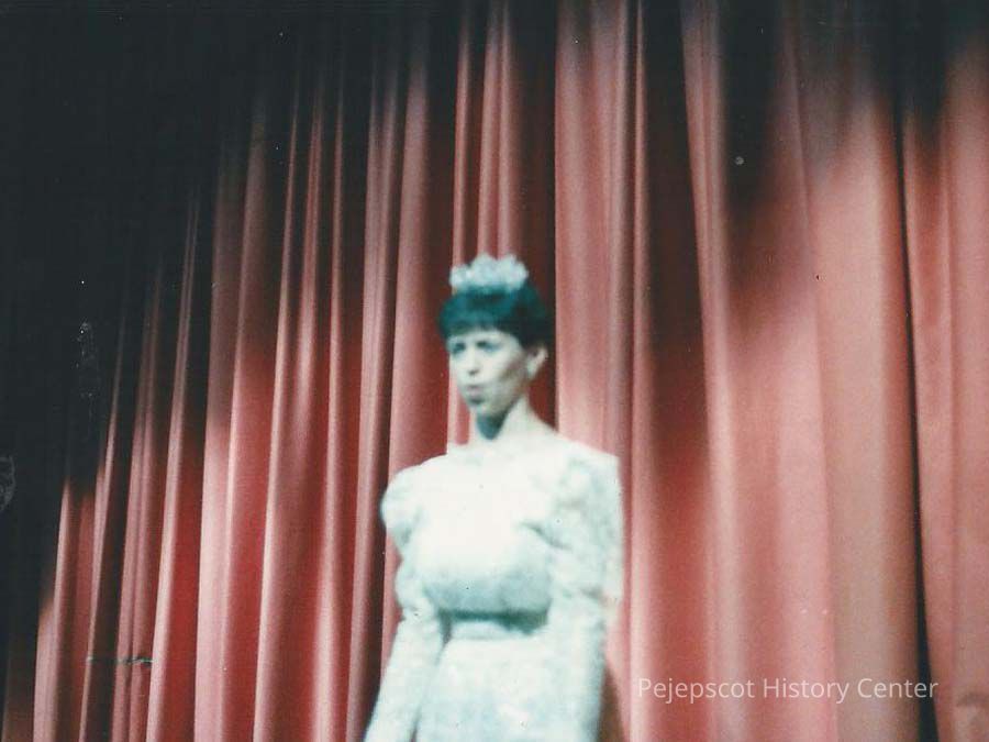A color photograph of Sharon Costedio singing the number she won as Brunswick Teen Queen 21 years ago.