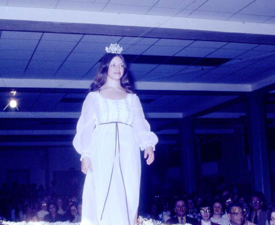 A 35 mm color slide of Sharon Hinckley a former Miss Teen Queen. The slide is marked, "17" and in red ink, "2-4." Undated
