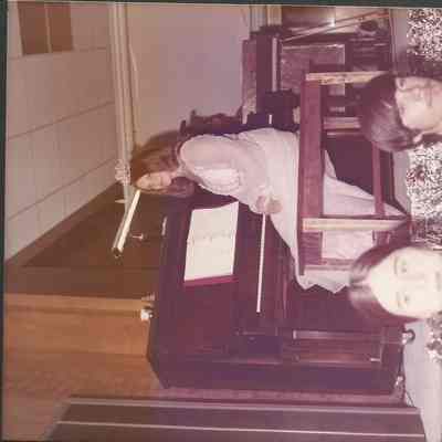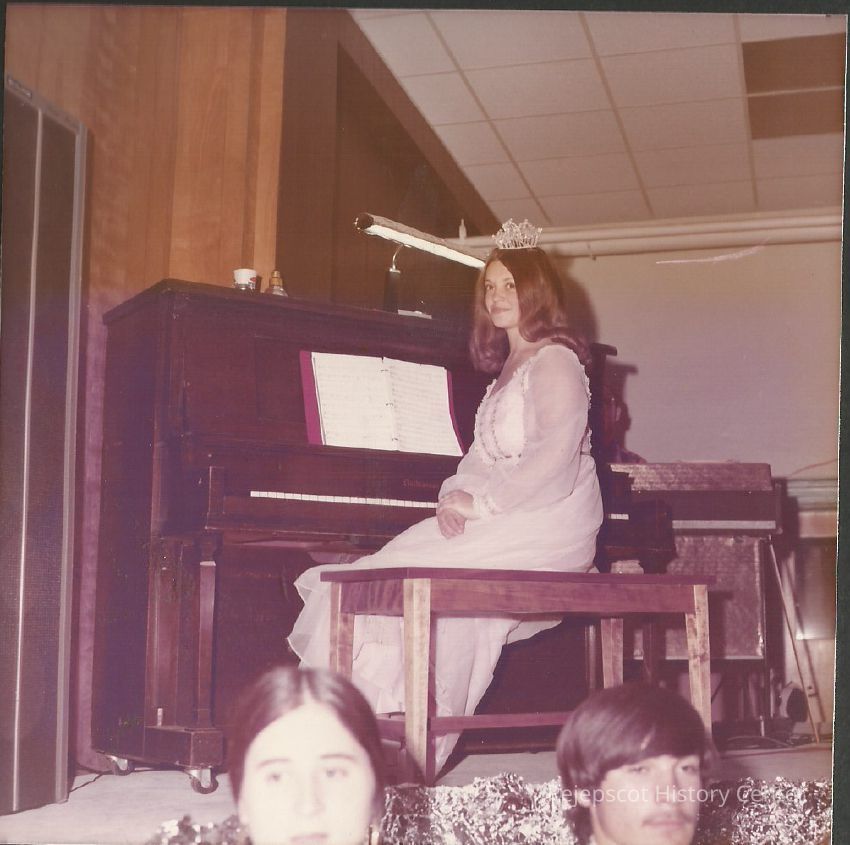 Sharon Hinckley Teen Queen 1968 looking at Fr. Wally while he is reading the dedication to her.Collection