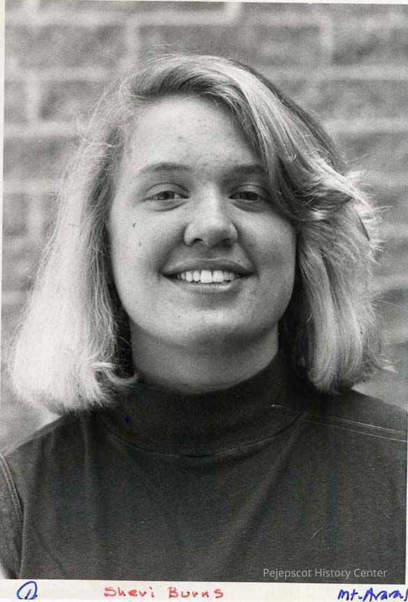 An undated black and white photo of Sheri Burns, a student at Mt. Ararat School in Topsham, Maine.