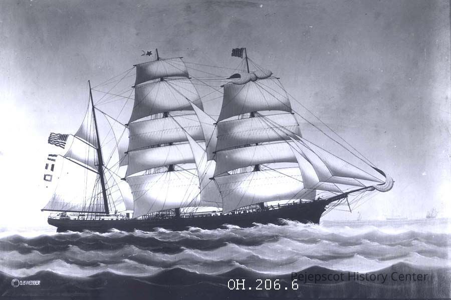 A photograph of a ship painting of the barque "Lydia Skolfield" by George B. Webber. Part of the George Skolfield fleet. Made in Harpswell, Maine