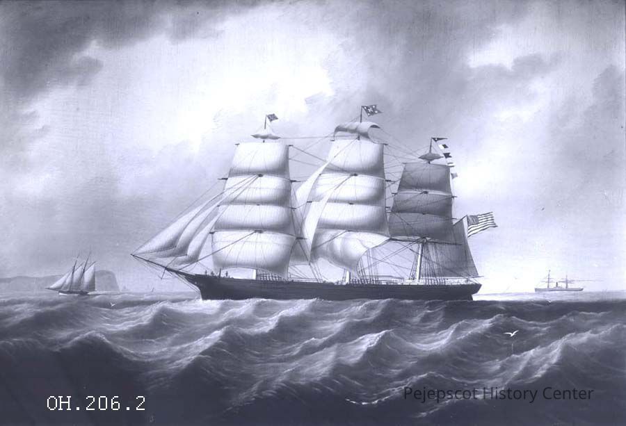 A photograph of a ship painting of "The Kentuckian" by George B. Webber. Capt. Alfred Merriman was Master in 1869.