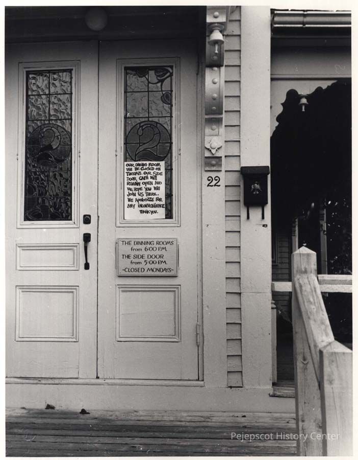 A B/W photograph of the entrance to the Side Door Cafe at 22 Lincoln Street. Undated